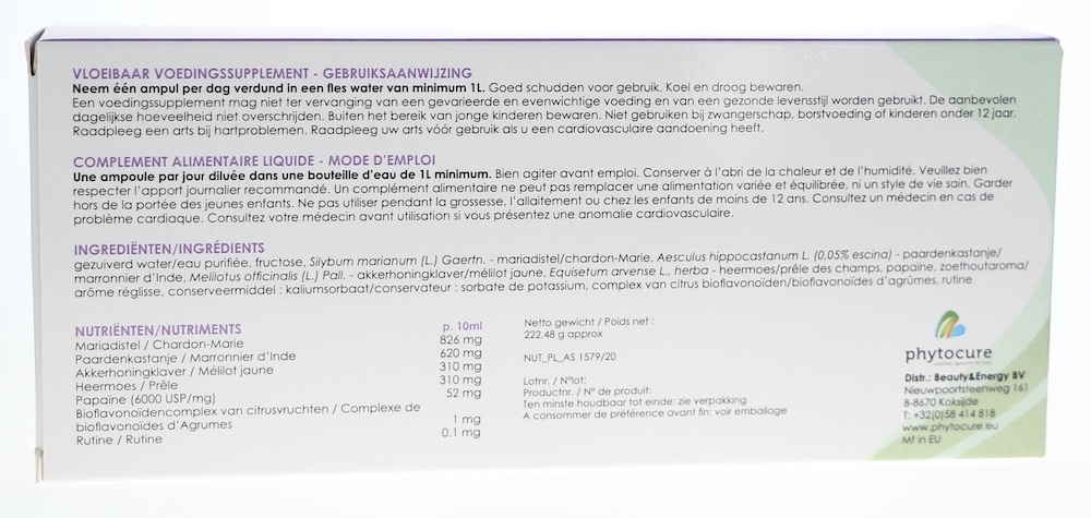 Mariendistel, weiße Rosskastanie, Feldhonigklee, Papaya, Rutin und Bioflavanoide.