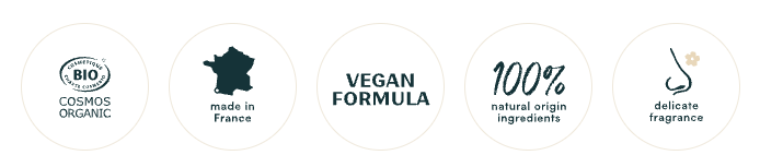 COSMOS ORGANIC certified by ECOCERT Greenlife according to the COSMOS standard.
